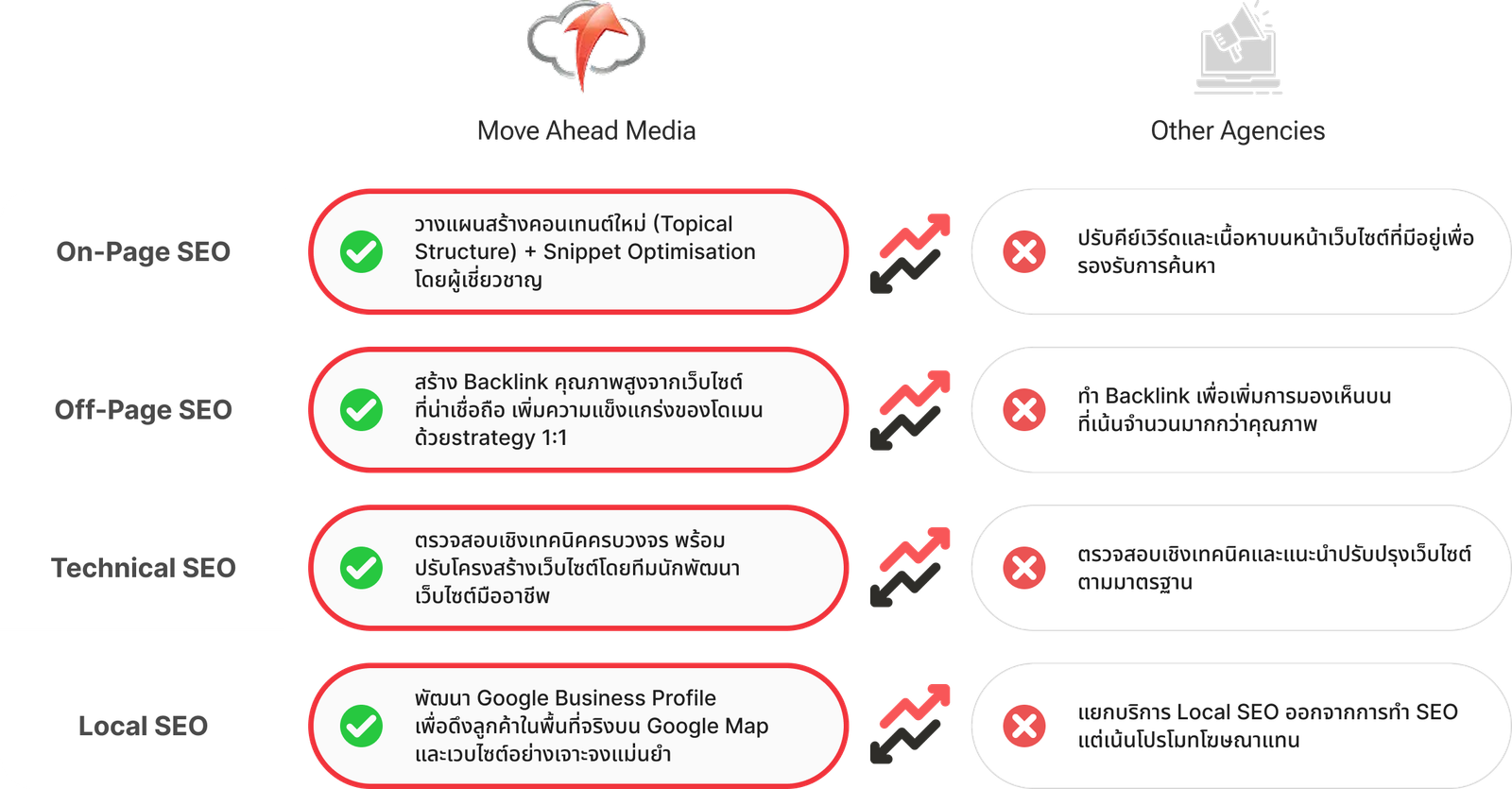 บริการทำ SEO ที่ Move Ahead Media จะช่วยให้เว็บไซต์ของคุณติดอันดับบนหน้าแรกของ Googleได้จริง ทำ SEO แบบครบวงจร เราพร้อมช่วยเพิ่มยอดขายและพัฒนาธุรกิจของคุณให้เติบโตในระยะยาว